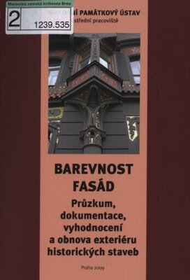Průzkum, dokumentace, vyhodnocení a obnova exteriéru historických staveb. Z obsahu: Výchozí principy a zásady - barevnost ve spojení s ochrannou funkcí povrchových vrstev, kombinace barevného a malovaného řešení fasády atd. Průzkum - průzkum srovnávací, průzkum archivní, lokalizace sond, provádění sond atd. Dokumentace průzkumu, vyhodnocení průzkumu. Návrh barevného řešení - barevnost fasády versus okolí, podíl barevnosti na celkovém výrazu atd.