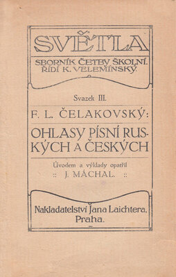 Dvě nejslavnější básnické sbírky Čelakovského, významného představitele našeho národního obrození. Ohlasy písní ruských - 26 písní. Látku ke svému ohlasu čerpal Čelakovský z ruských bylin, ale něk ...