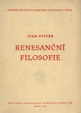 Ve čtyřech přednáškách je podána charakteristika renesanční filosofie, vysvětleny její společenské kořeny a shrnut přínos hlavních představitelů renesance v oboru vědy a politické theorie i v oblasti náboženské ideologie. Připojeny jsou kontrolní otázky.