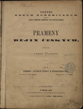 Prameny dějin českých., díl ii, kosmův letopis český s pokračovateli