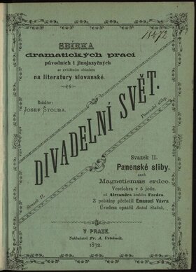 Druhý svazek ze souborného vydání původních a cizojazyčných dramatických prací vydáváných pod názvem Divadelní svět obsahuje překlad Fredrovy komedie Panenské sliby aneb Magnetismus srdce s úvodním slovem Antala Staška.