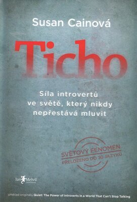 Kniha byla za necelý rok přeložena již do 30 světových jazyků a stala se mezinárodním bestsellerem."Ticho" mění nejen pohled introvertů na sebe samé, ale i to, jak na introverty pohlížejí ostatní. Kolik skutečných introvertů znáte? Odpověď vás možná překvapí. Je jich mnohem více, než si myslíte. V kultuře, která nás od základní školy až po byznys vychovává k týmové práci, je vše nastavené pro úspěch extrovertů. Teprve díky této knize získali ti tiší svou mluvčí: Susan Cainovou. Kniha je důkladným rozborem, polemikou, ale také docela praktickým návodem, jak oběma typům povah usnadnit soužití. Autorka dokládá, jak schopnosti introvertů, včetně vůdčích, bývají v éře ideálu extraverze přehlíženy, podceňovány a systematicky potlačovány, a zabývá se zkoumáním dalekosáhlého dopadu upřednosťování extrovertů. Současně pátrá po nejnovějších poznatcích v oboru psychologie a neurovědy, s cílem odhalit překvapivé rozdíly mezi extroverty a introverty.