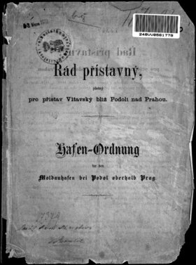 Pravidla pro říční dopravu na Vltavě, zvláště pak v podolském přístavu, v 80. letech 19. stol. (v českém a německém jazyce).