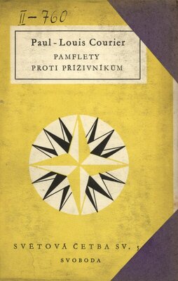 P.-L.C., důstojník za Revoluce a za Napoleona, za Restaurace spravoval svůj statek a psal pamflety, které Engels řadí mezi "vzory a mistrovská díla" literatury polemické. Náš soubor přináší jednak "Dopisy z italských tažení" z let 1799-1807, jednak "Pamflety proti příživníkům" (1816-1824). Italské listy stíhají posměchem "hrdiny", kteří kradli a loupili v zemi, kterou měli osvobodit. Autor listů je výjimkou oné doby: o Napoleonovi nemá ilusí a bystře odhaduje protirevolučnost jeho vlády, jež připravila půdu bílému teroru Restaurace. Tomu platí ty druhé pamflety, kde se projevuje jako naprostý nepřítel jakéhokoliv politického násilí a příživnictví. Byl myšlenkově spřízněn s liberální oposicí proti reakční vládě, jež učinila vzduch Francie nedýchatelným a již napadal i na místech nejvyšších. Své pamflety stylisoval jako úderné útoky a právě v té jejich zhuštěnosti, konkretnosti a jazyk. vytříbenosti je Courierova síla.