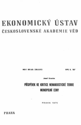 edice: Výzkumné publ. Ekon. ústavu ČSAV v Praze (107)