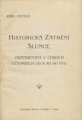 Historická zatmění slunce, zaznamenaná v českých letopisech od r. 813 do 1574