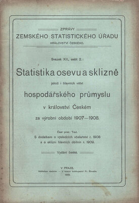 Zprávy Zemského statistického úřadu Království českého., statistika osevu a sklizně jakož i hlavních větví hospodářského průmyslu v království českém za výrobní období ...