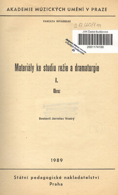 Materiály ke studiu režie a dramaturgie, díl 1., obraz