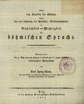 Ueber den Karakter der Slawen, dann über den Ursprung, die Schicksale, Vollkommenheiten, die Nützlichkeit und Wichtigkeit der böhmischen Sprache